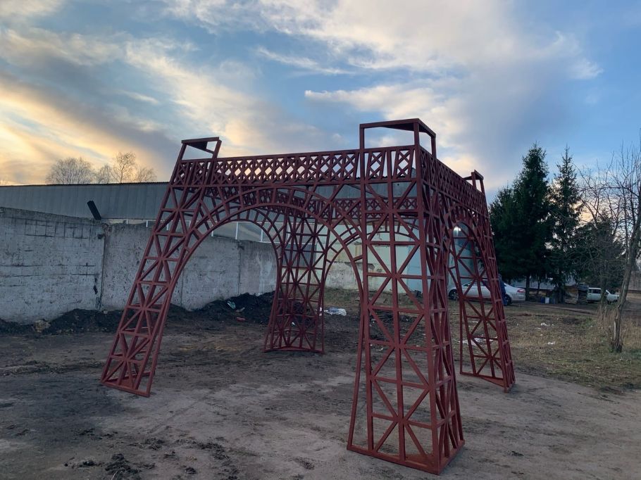 Данная Эйфелевая башня была разработана как беседка, имеющая 2 этажа. Первый этаж представляет из себя квадрат с размерами 4х4 в котором внутри можно делать всё что пожелает фантазия, 2й этаж представляет из себя более развлекательный характер, где есть возможность установить качели,подвесные кресла,кресла и т.д.